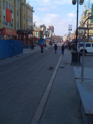 中国大連旅行画像その39:横断風景・この写真ではあまり大変さが伝わりませんが、道が広いと渡るのも大変だったんですよ